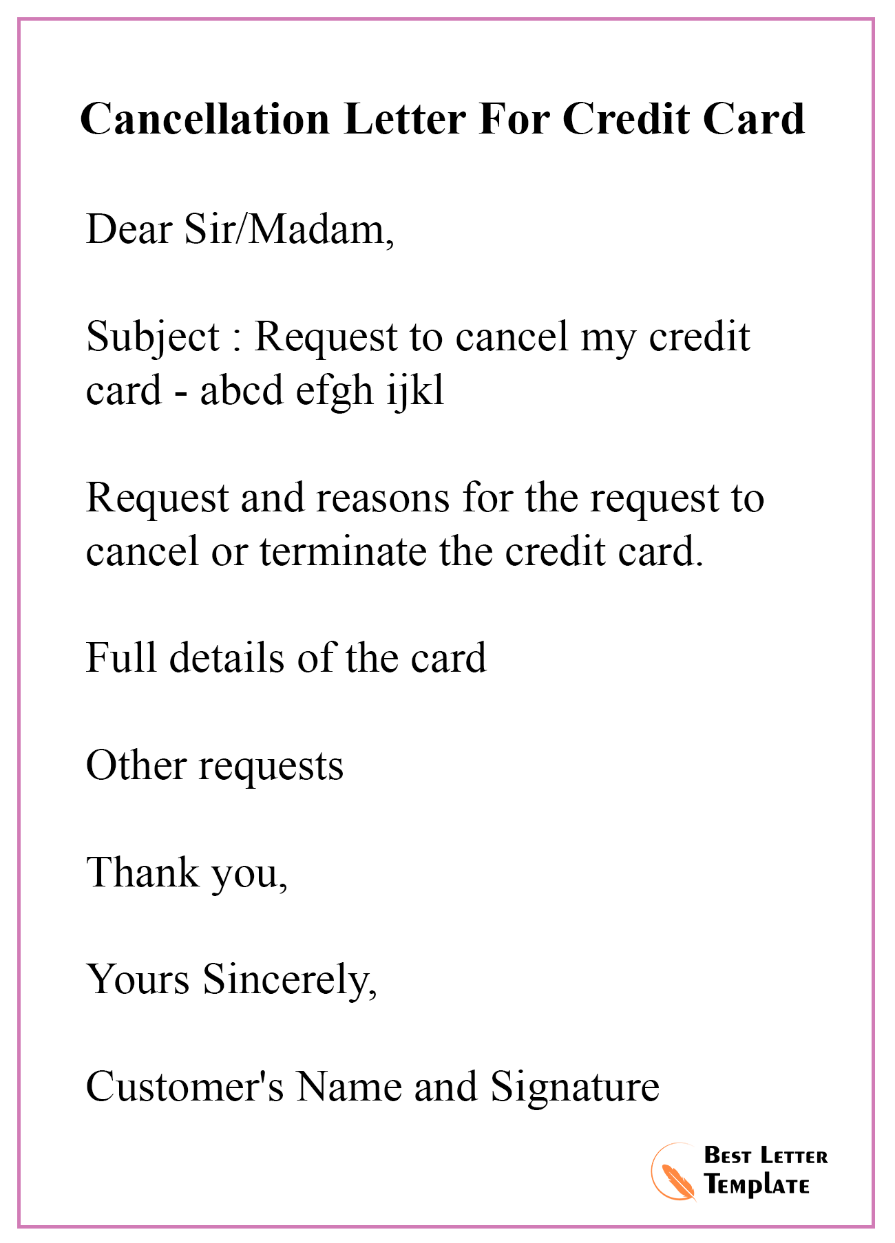 Credit Card Cancellation Letter Template